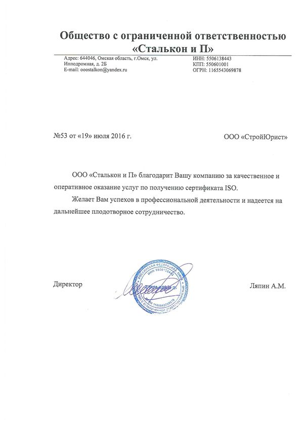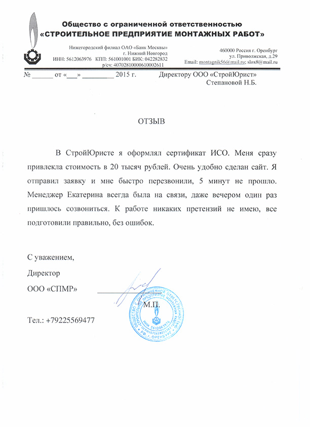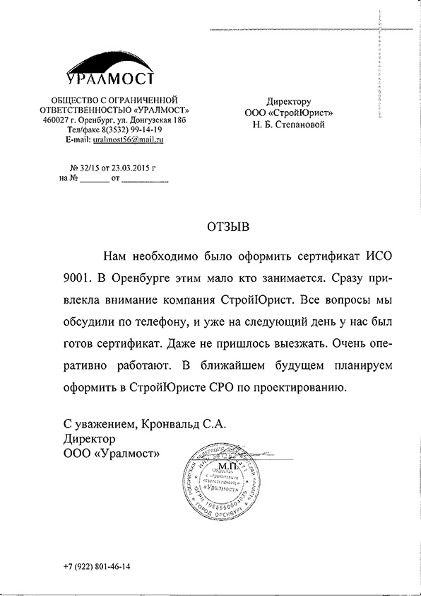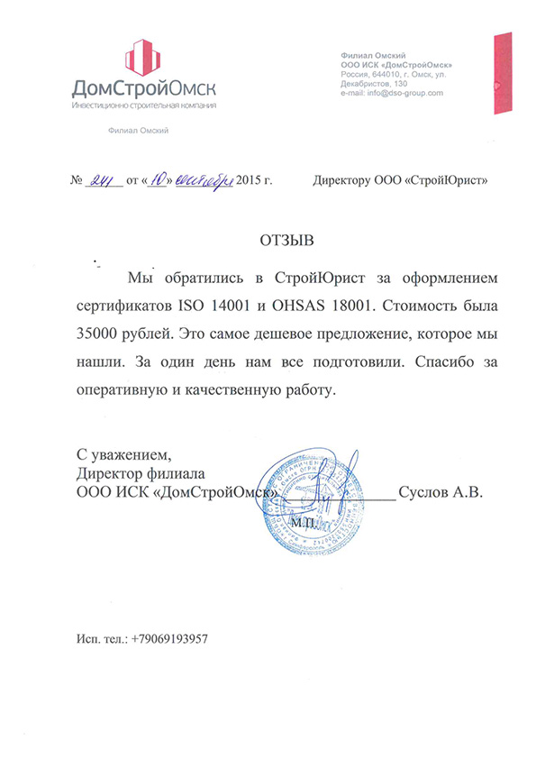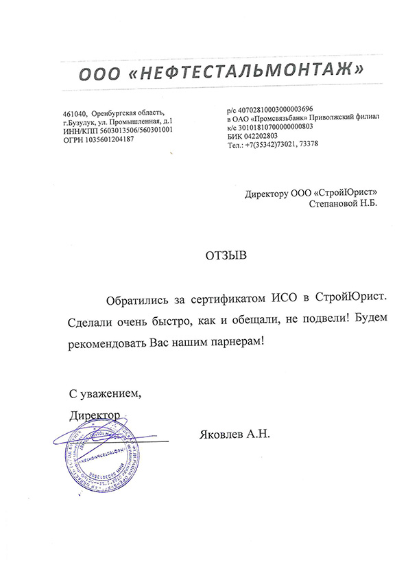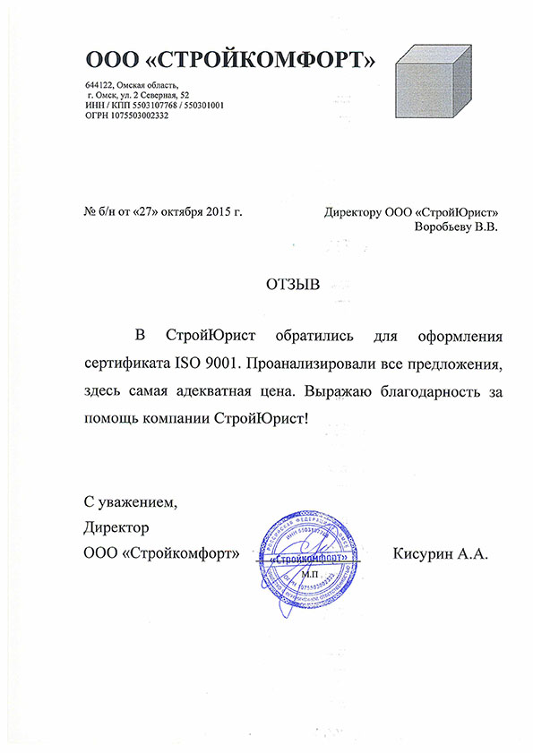 Отзывы клиентов "СтройЮрист" по ISO в Озёрске