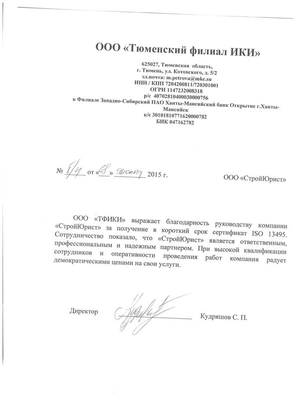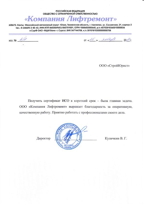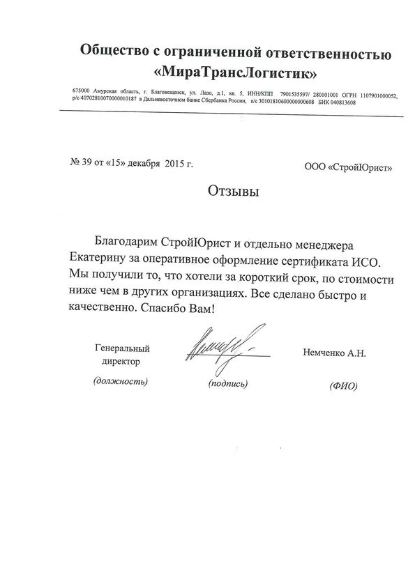 Отзывы клиентов "СтройЮрист" по ISO в Озёрске