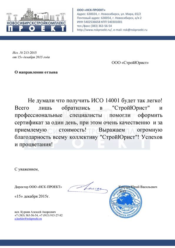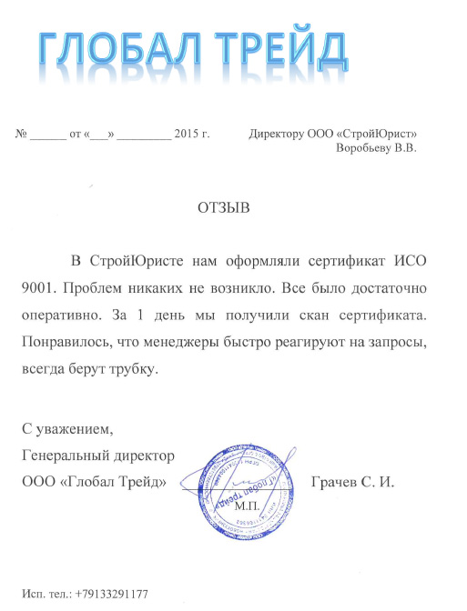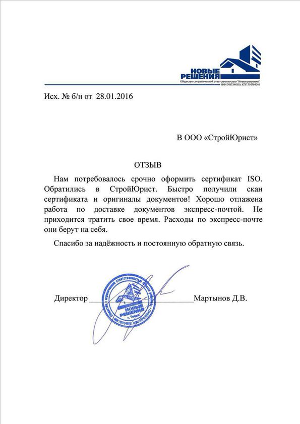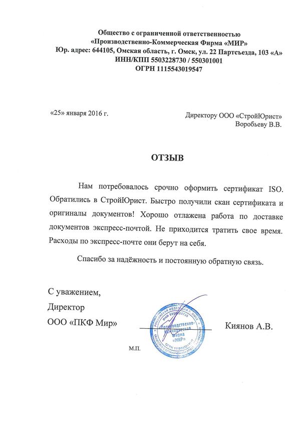 Отзывы клиентов "СтройЮрист" по ISO в Озёрске