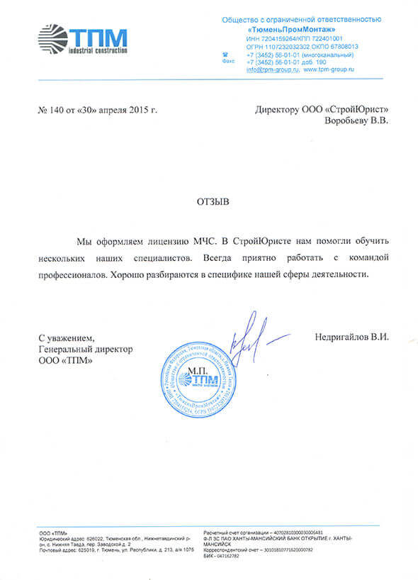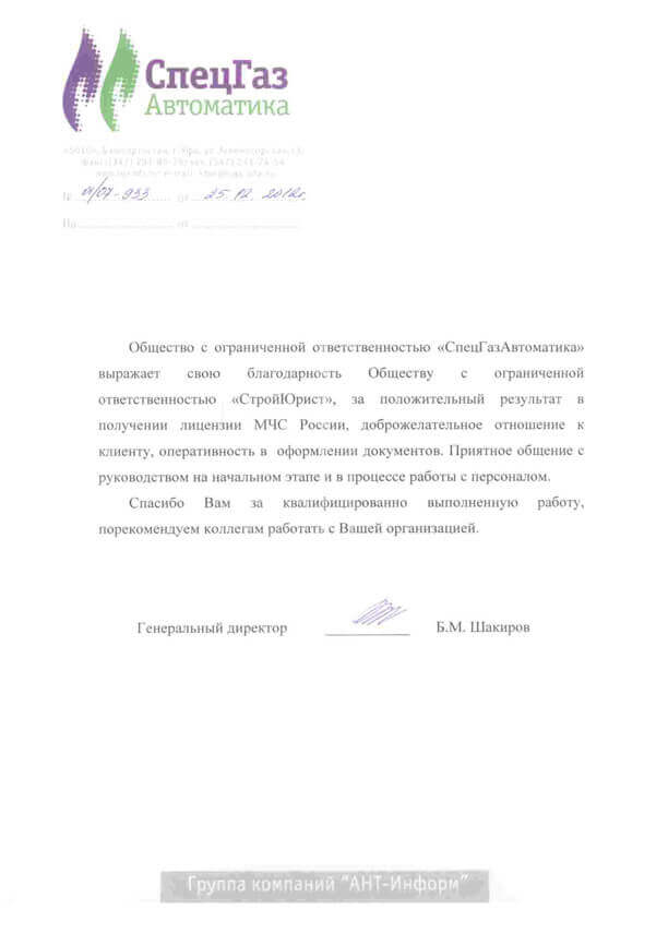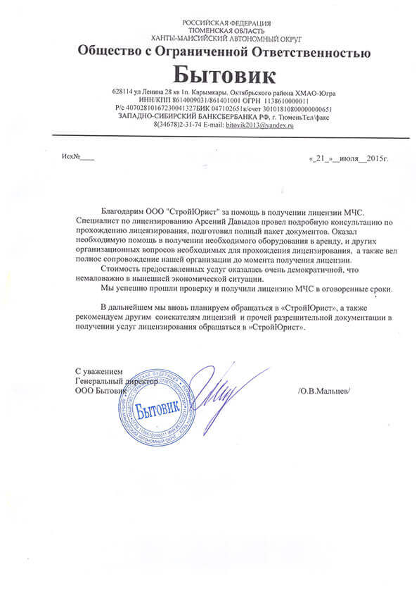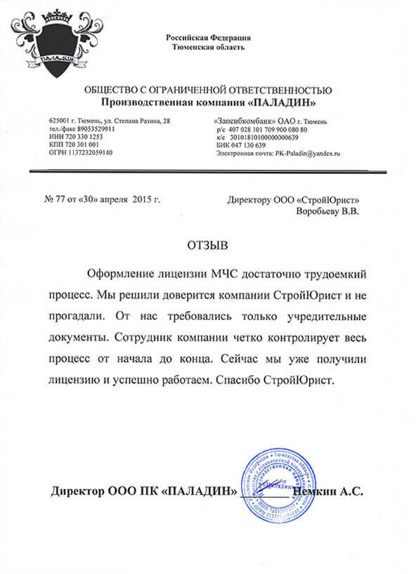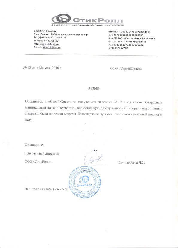 Отзывы клиентов "СтройЮрист" по лицензированию МЧС в Озёрске
