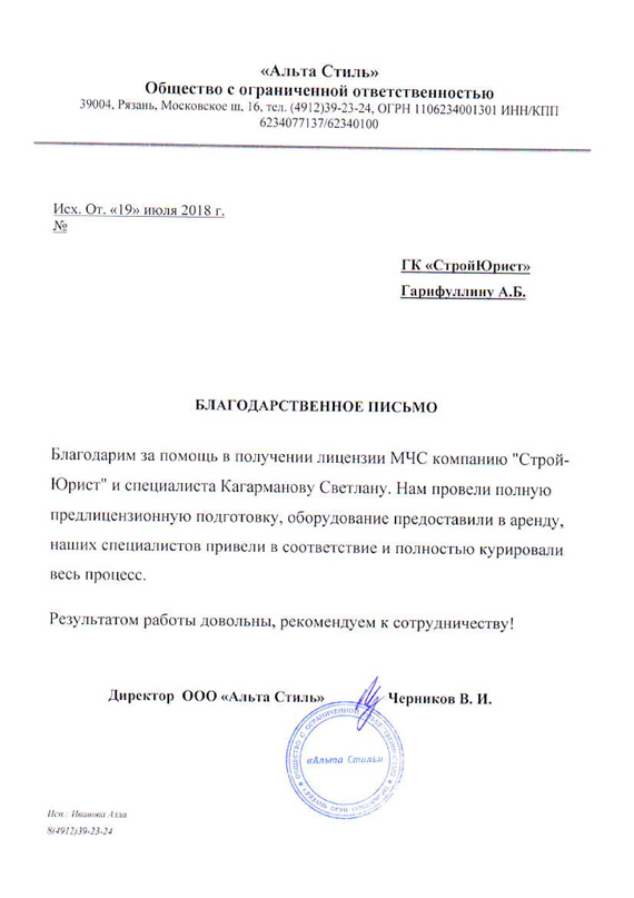 Отзывы клиентов "СтройЮрист" по лицензированию МЧС в Озёрске