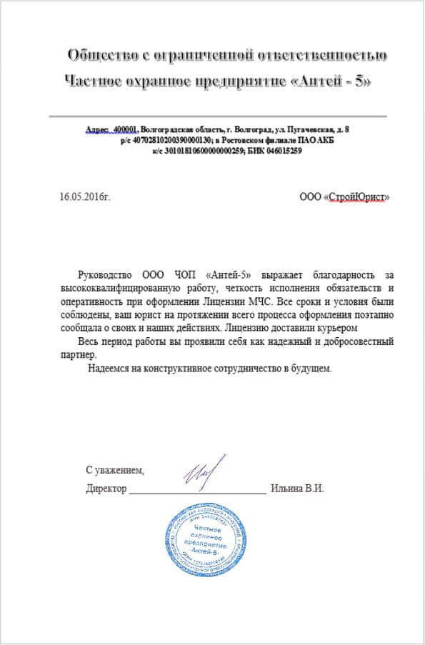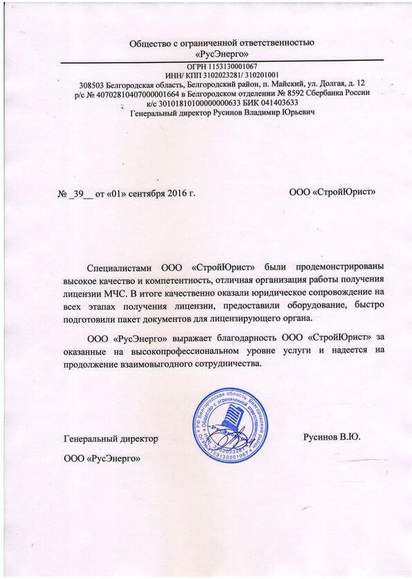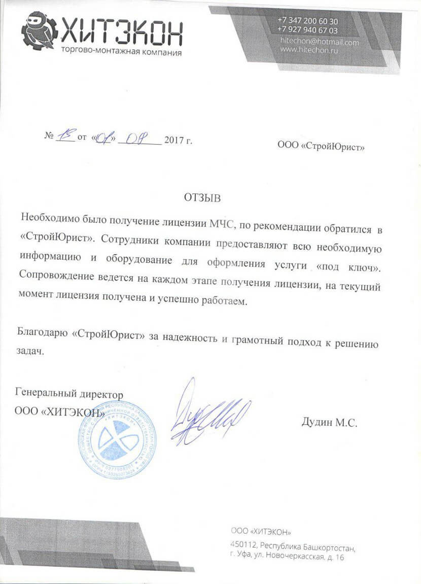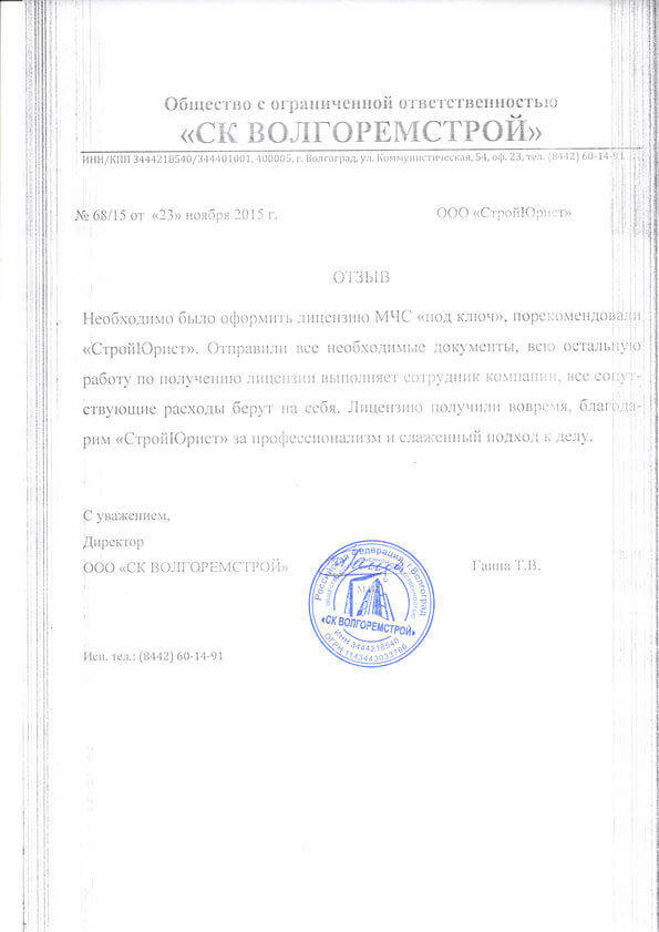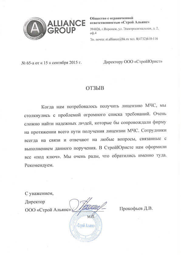 Отзывы клиентов "СтройЮрист" по лицензированию МЧС в Озёрске