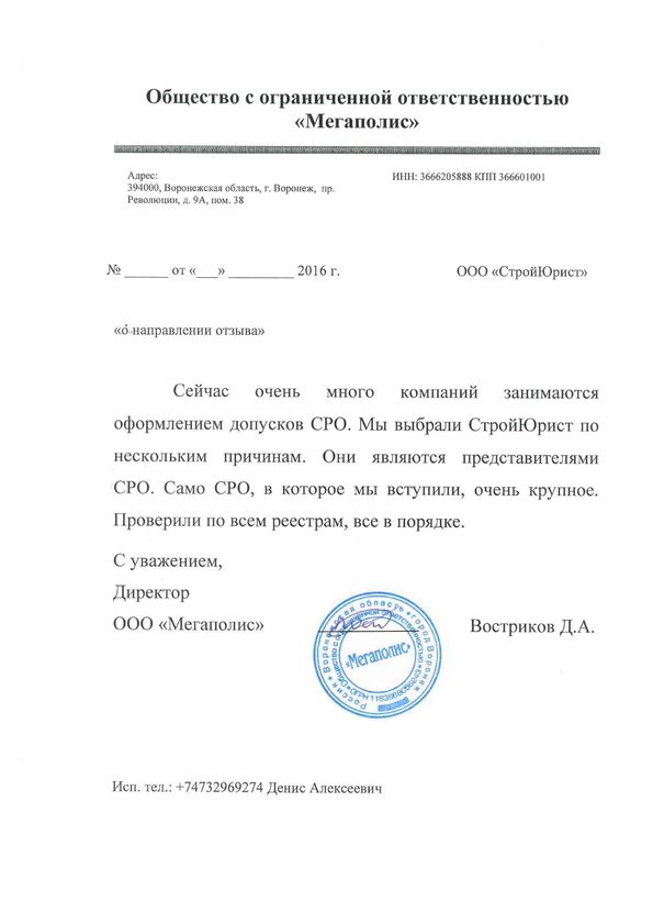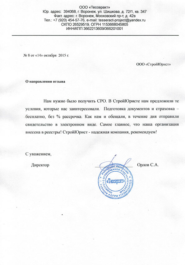 Отзывы клиентов "СтройЮрист" по вступлению в СРО в Озёрске