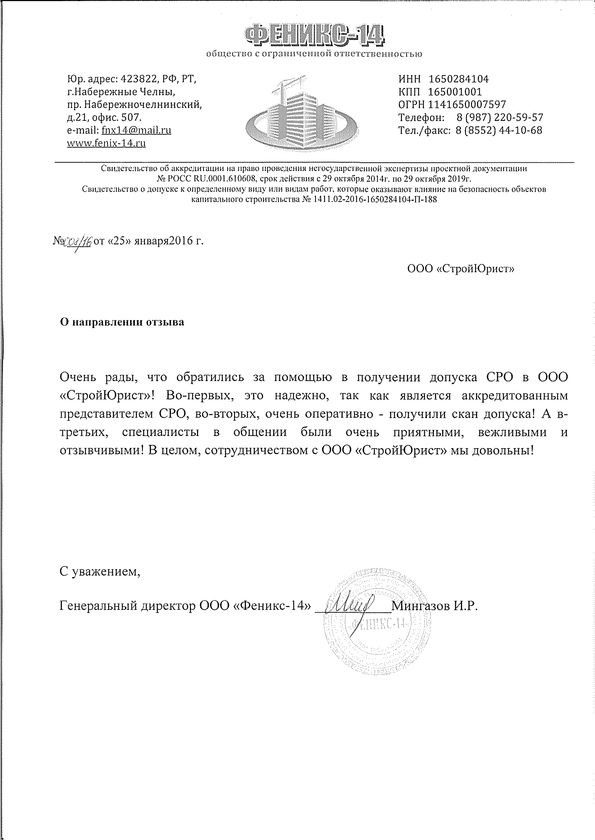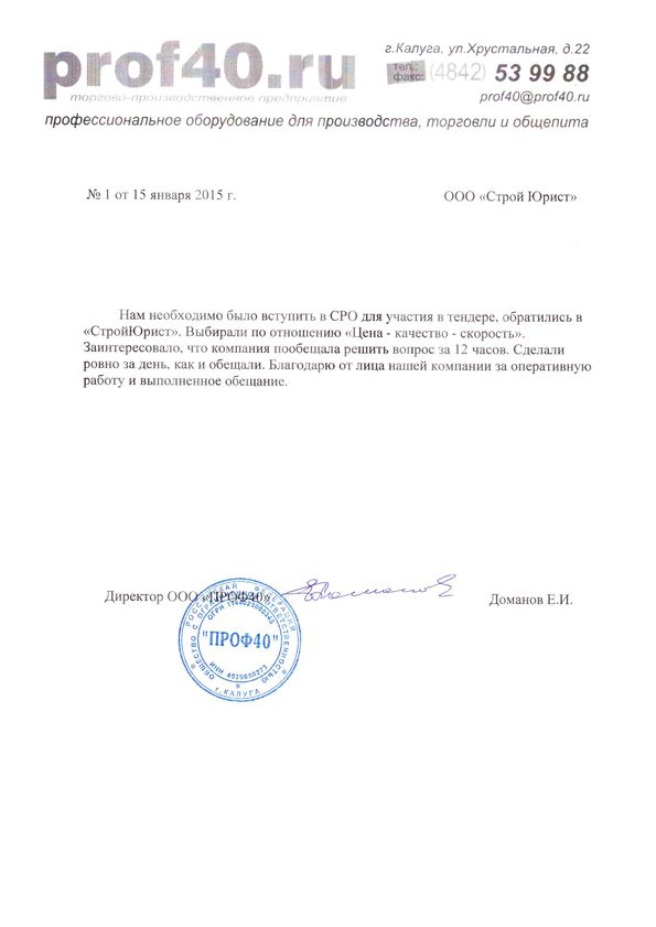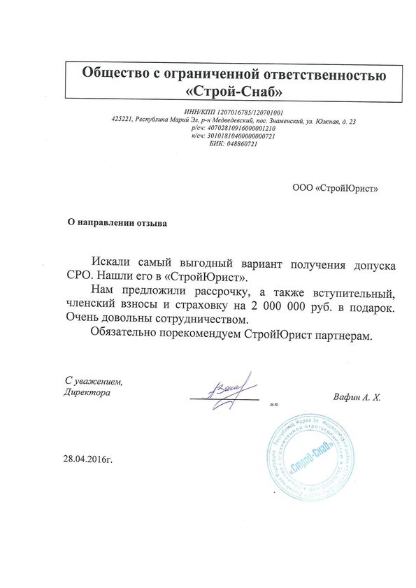 Отзывы клиентов "СтройЮрист" по вступлению в СРО в Озёрске