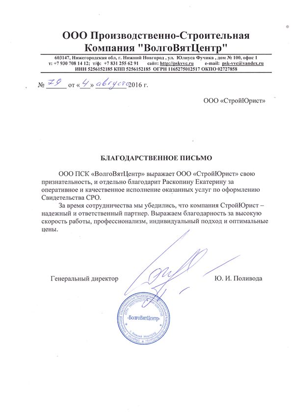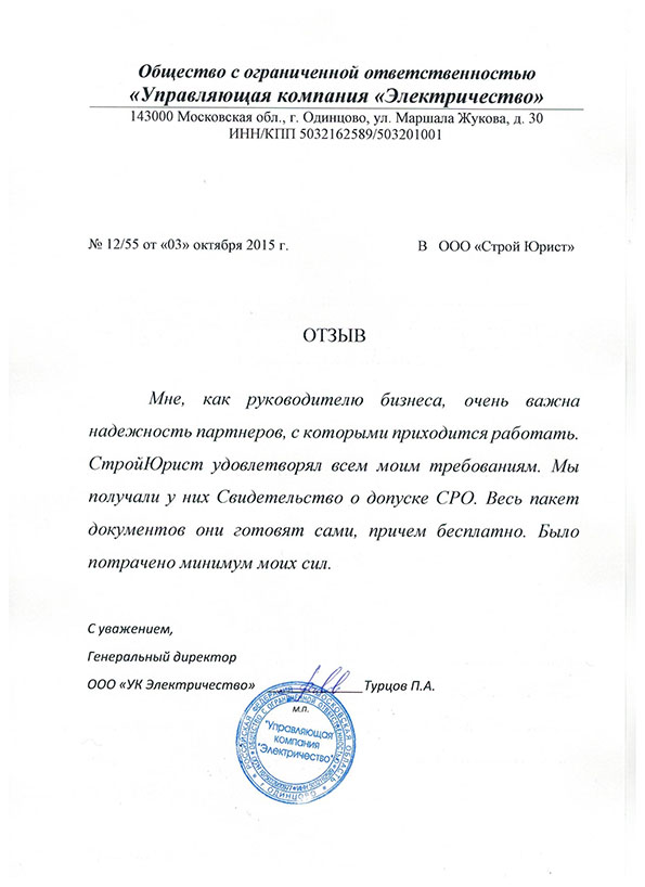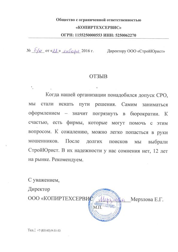 Отзывы клиентов "СтройЮрист" по вступлению в СРО в Озёрске