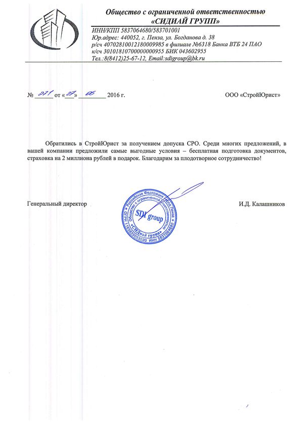 Отзывы клиентов "СтройЮрист" по вступлению в СРО в Озёрске