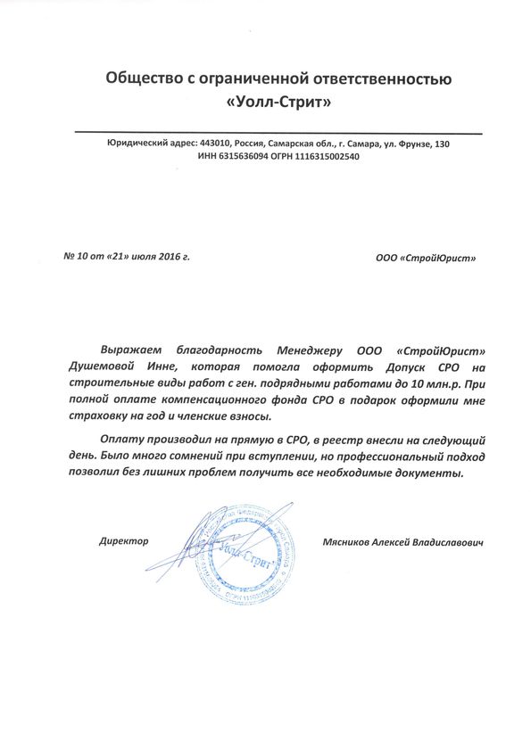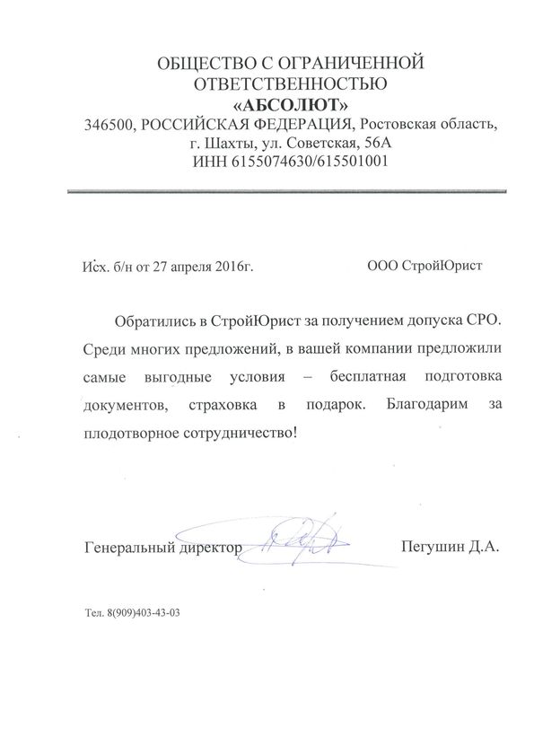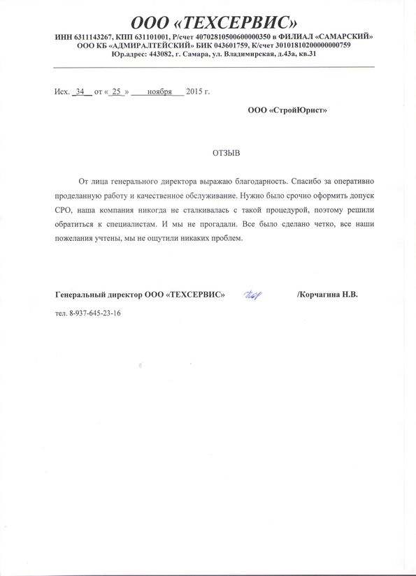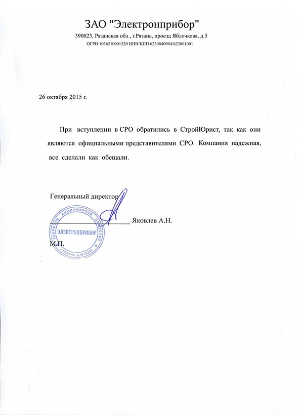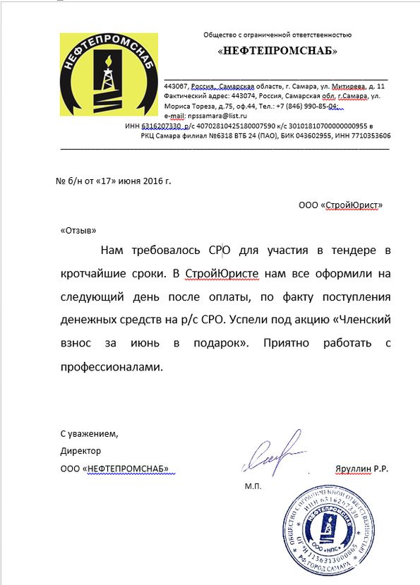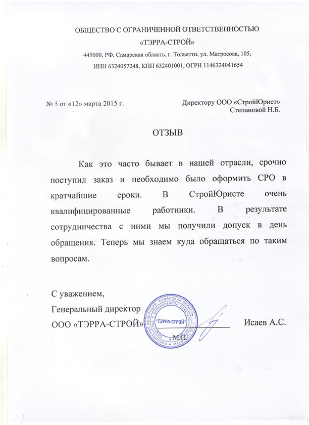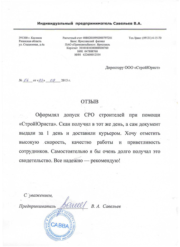 Отзывы клиентов "СтройЮрист" по вступлению в СРО в Озёрске