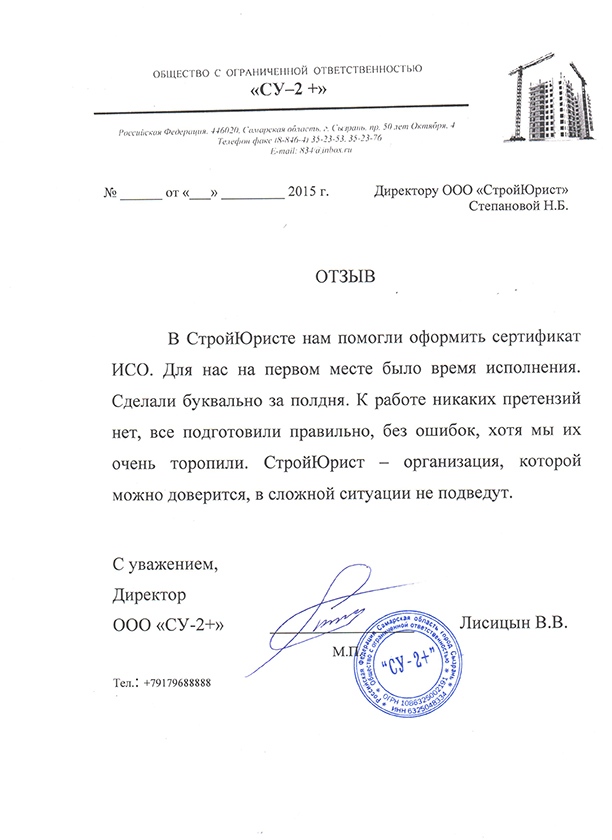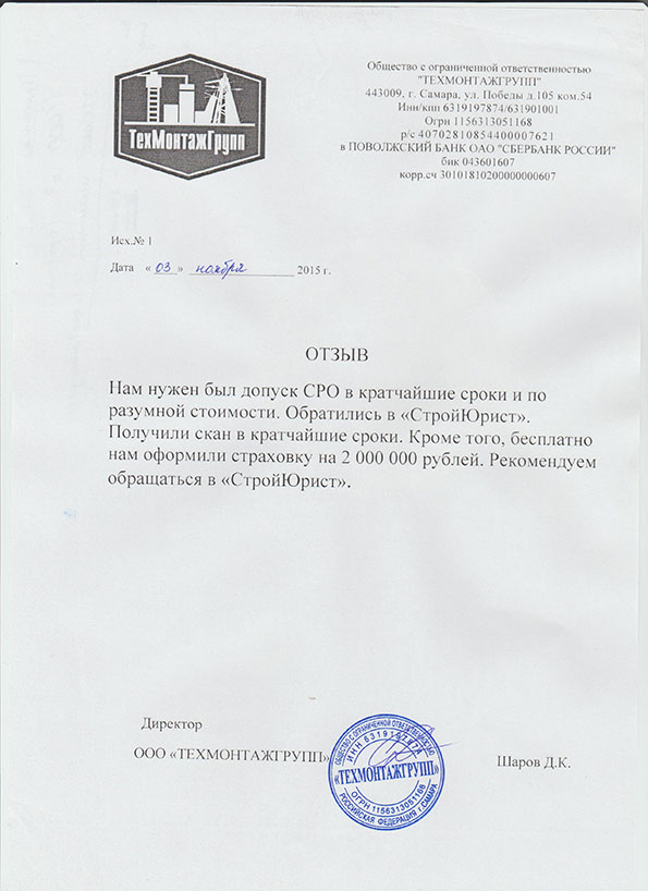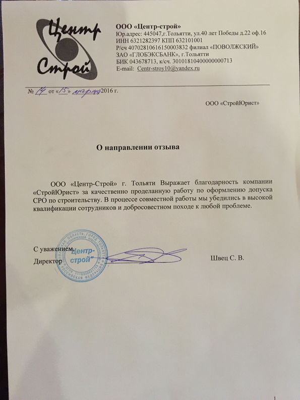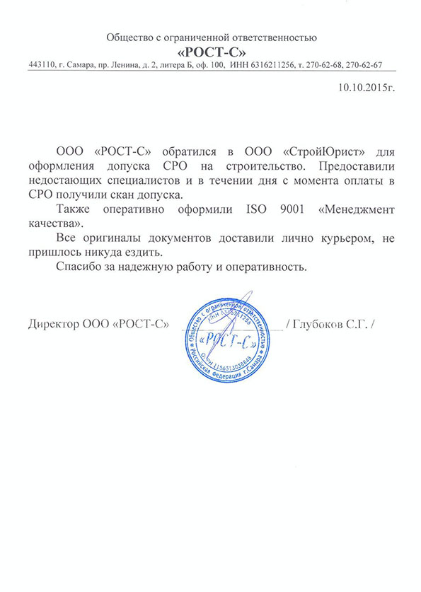 Отзывы клиентов "СтройЮрист" по вступлению в СРО в Озёрске
