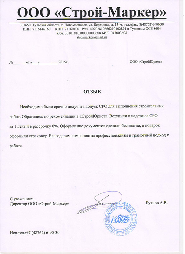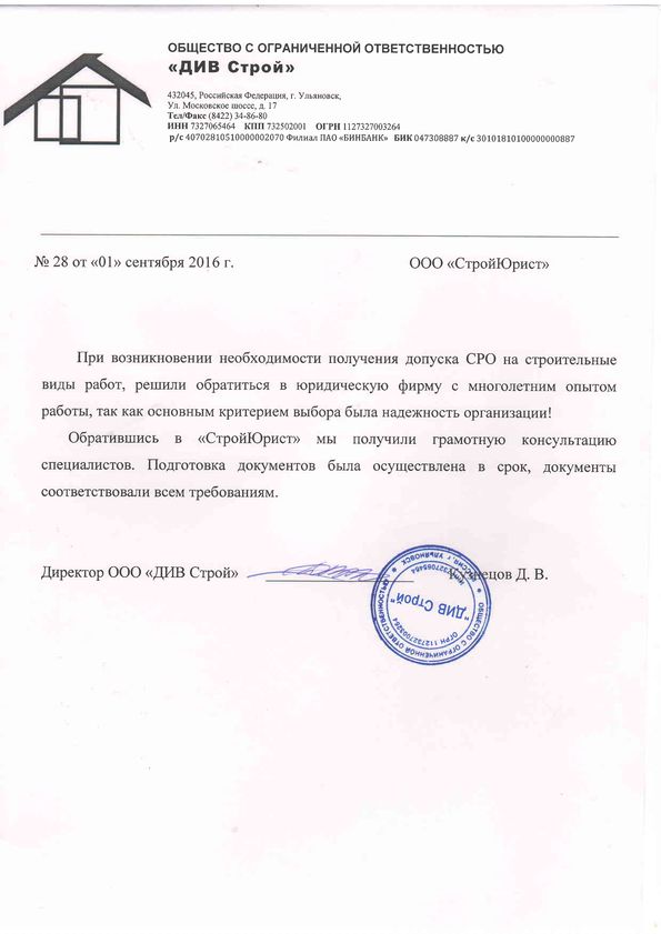 Отзывы клиентов "СтройЮрист" по вступлению в СРО в Озёрске