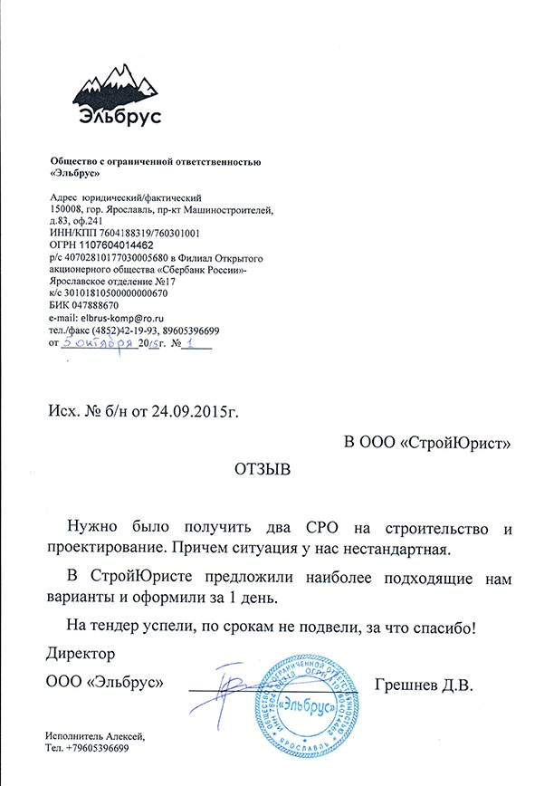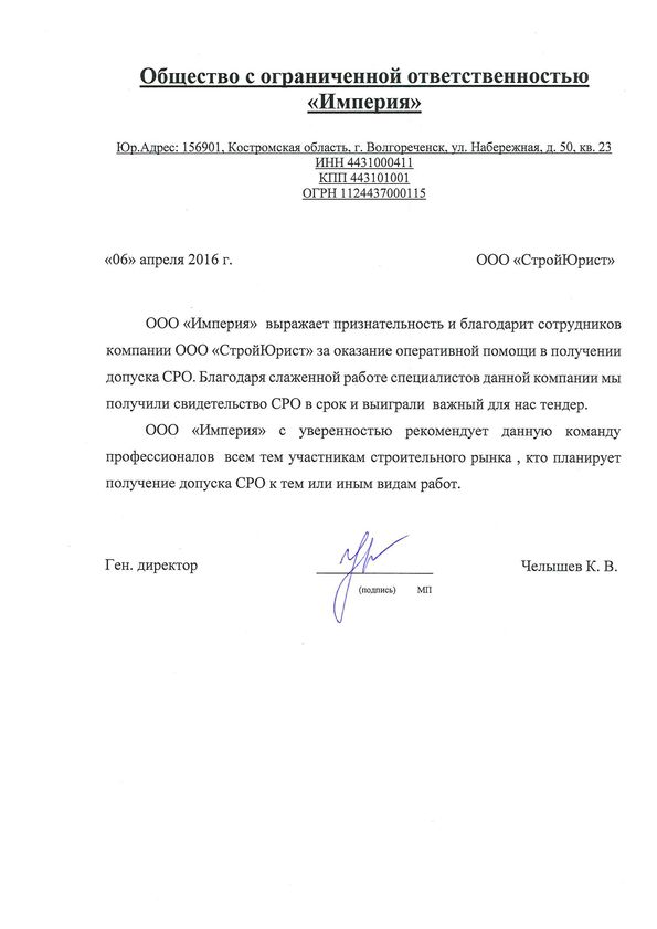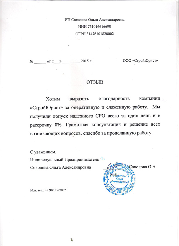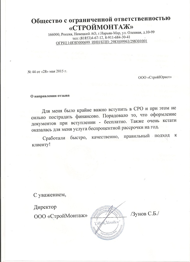Отзывы клиентов "СтройЮрист" по вступлению в СРО в Озёрске