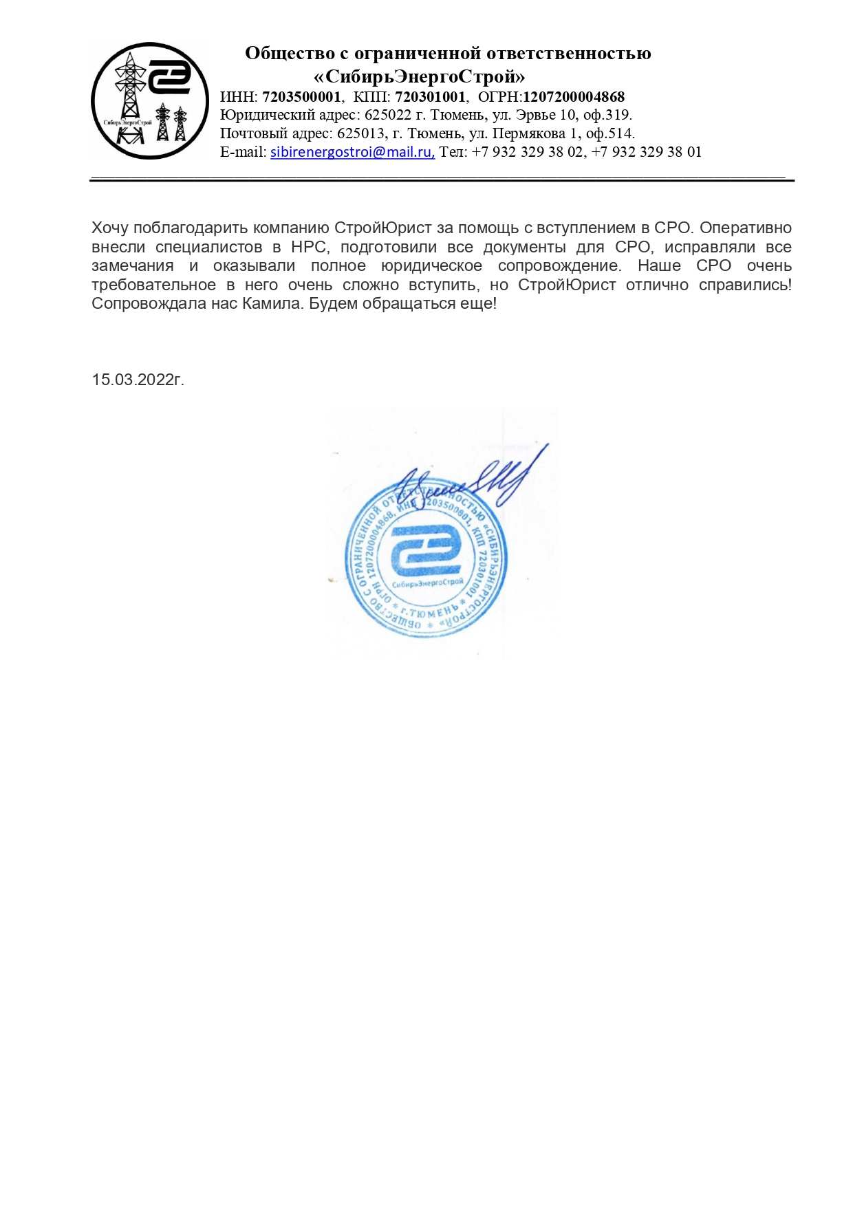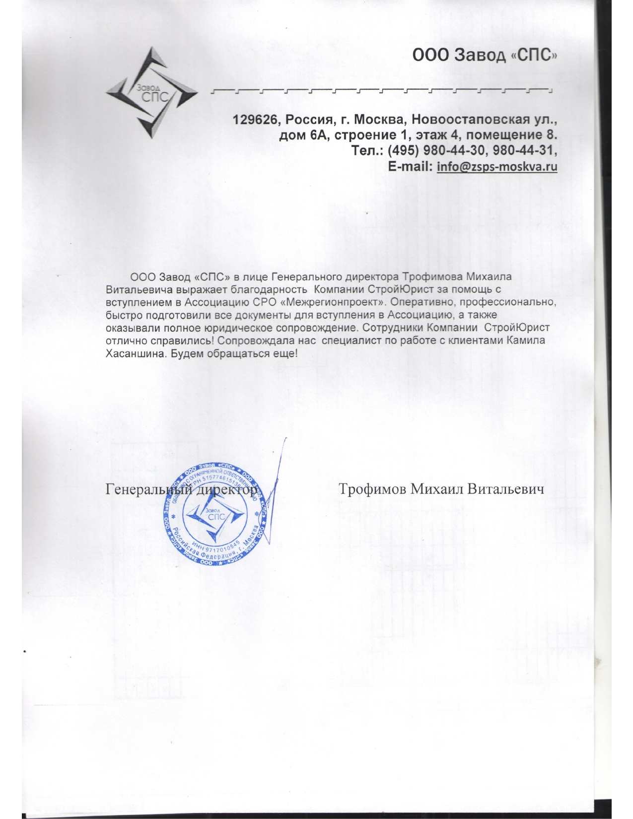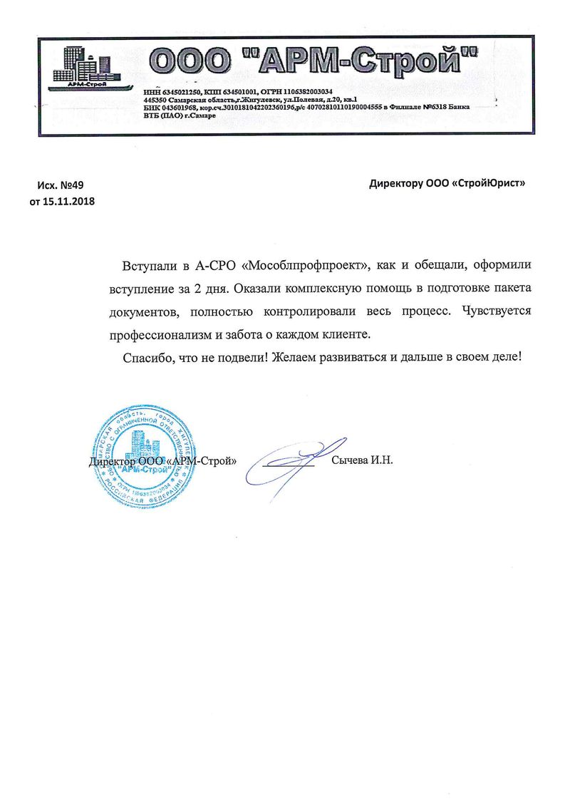 Отзывы клиентов "СтройЮрист" по вступлению в СРО в Озёрске