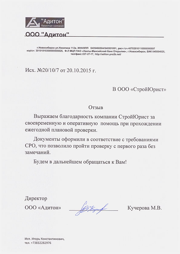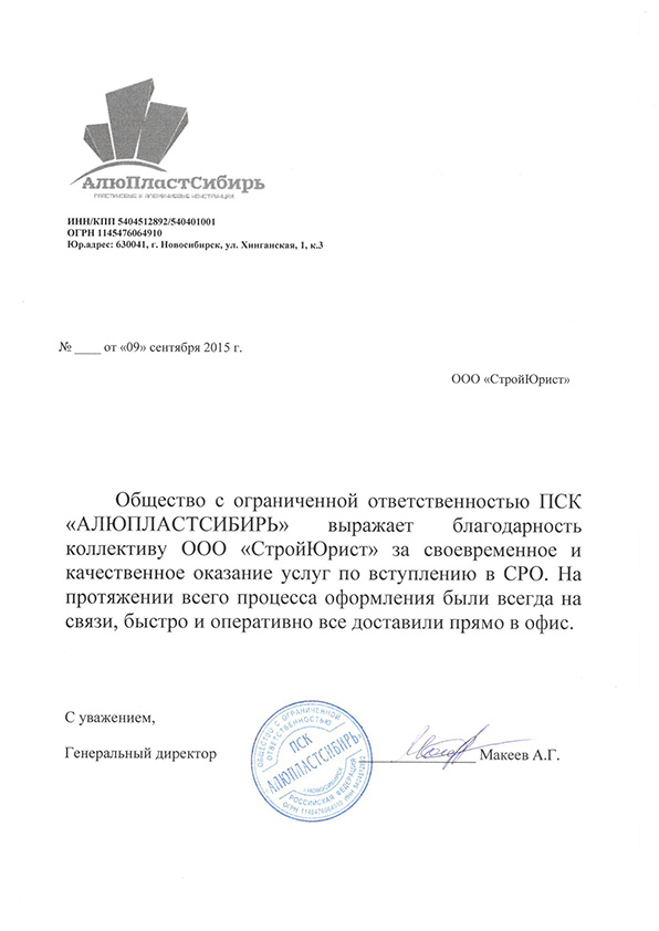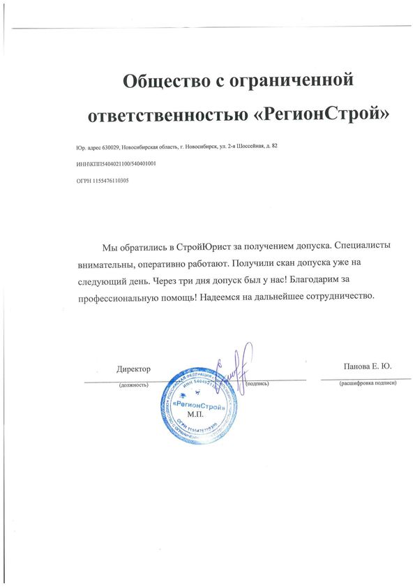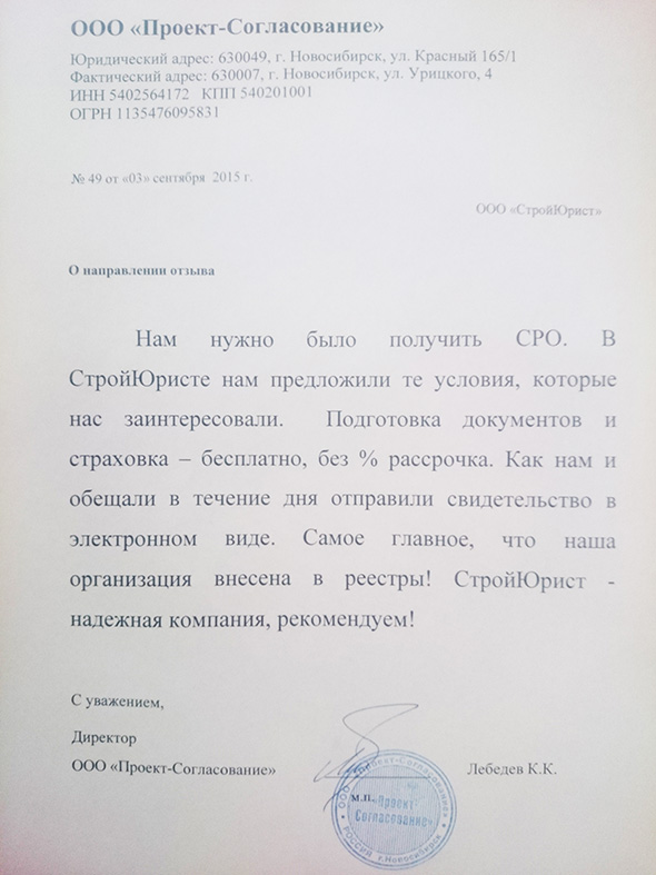 Отзывы клиентов "СтройЮрист" по вступлению в СРО в Озёрске