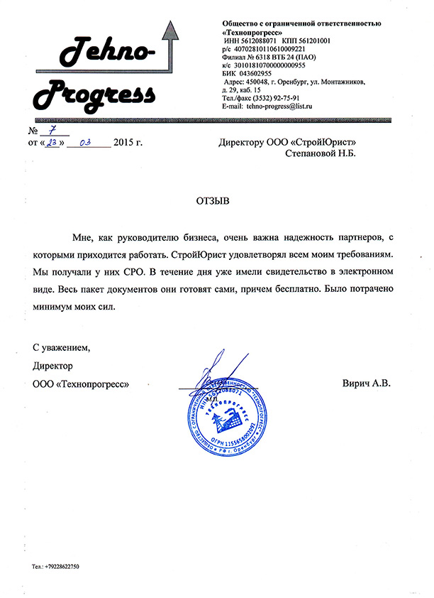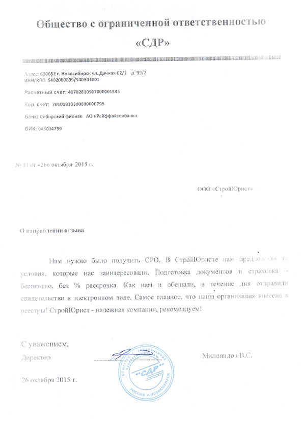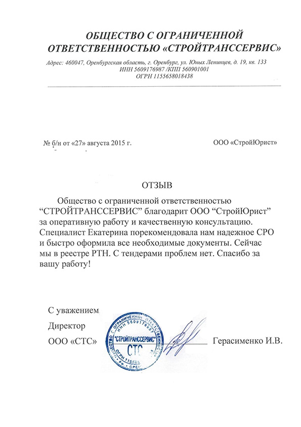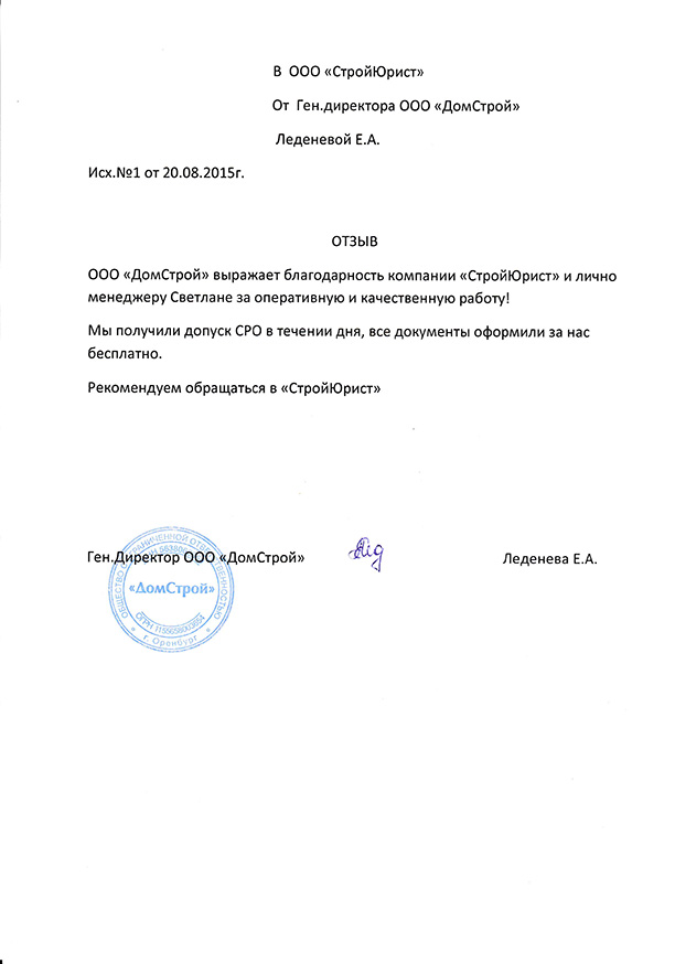 Отзывы клиентов "СтройЮрист" по вступлению в СРО в Озёрске