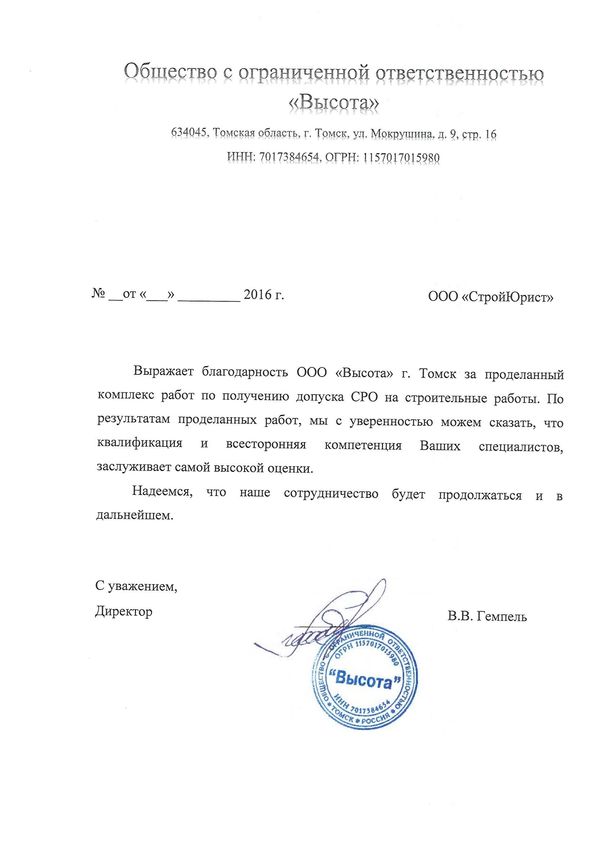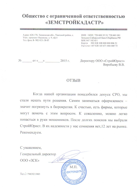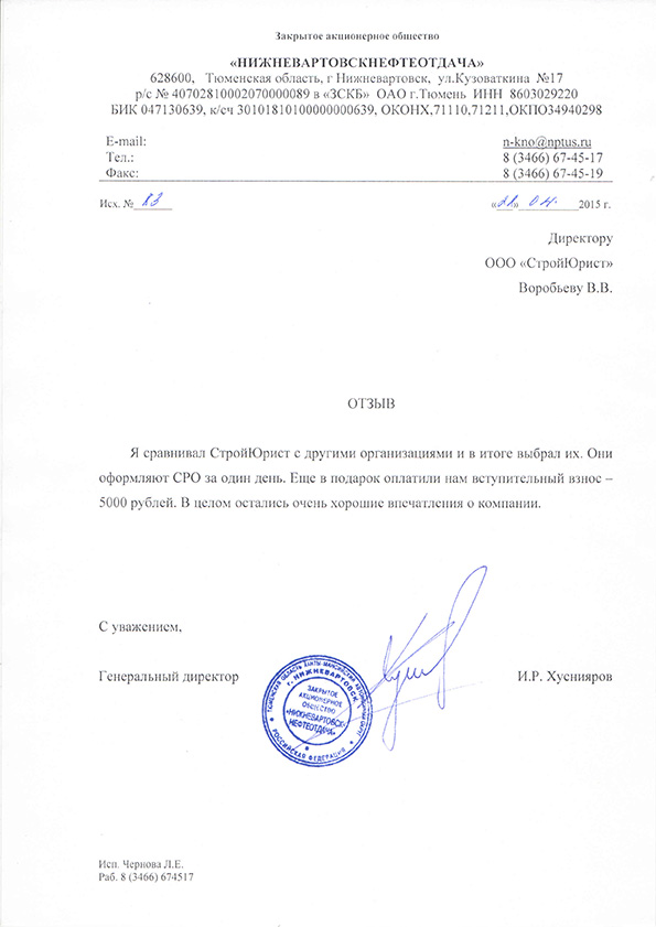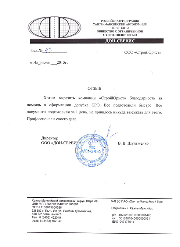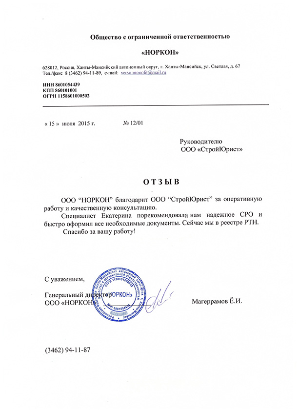 Отзывы клиентов "СтройЮрист" по вступлению в СРО в Озёрске