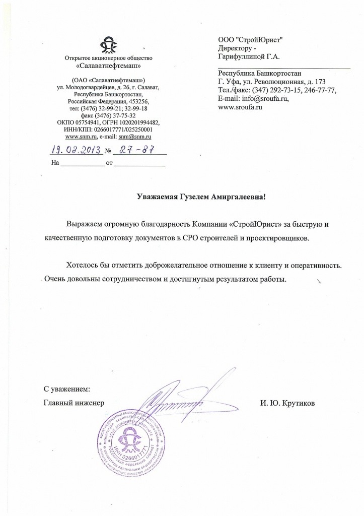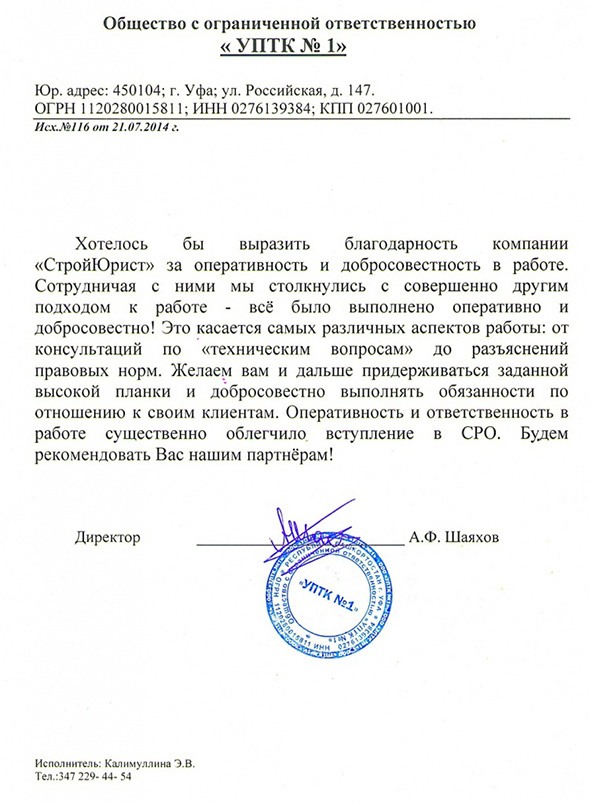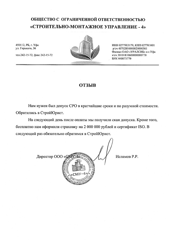 Отзывы клиентов "СтройЮрист" по вступлению в СРО в Озёрске
